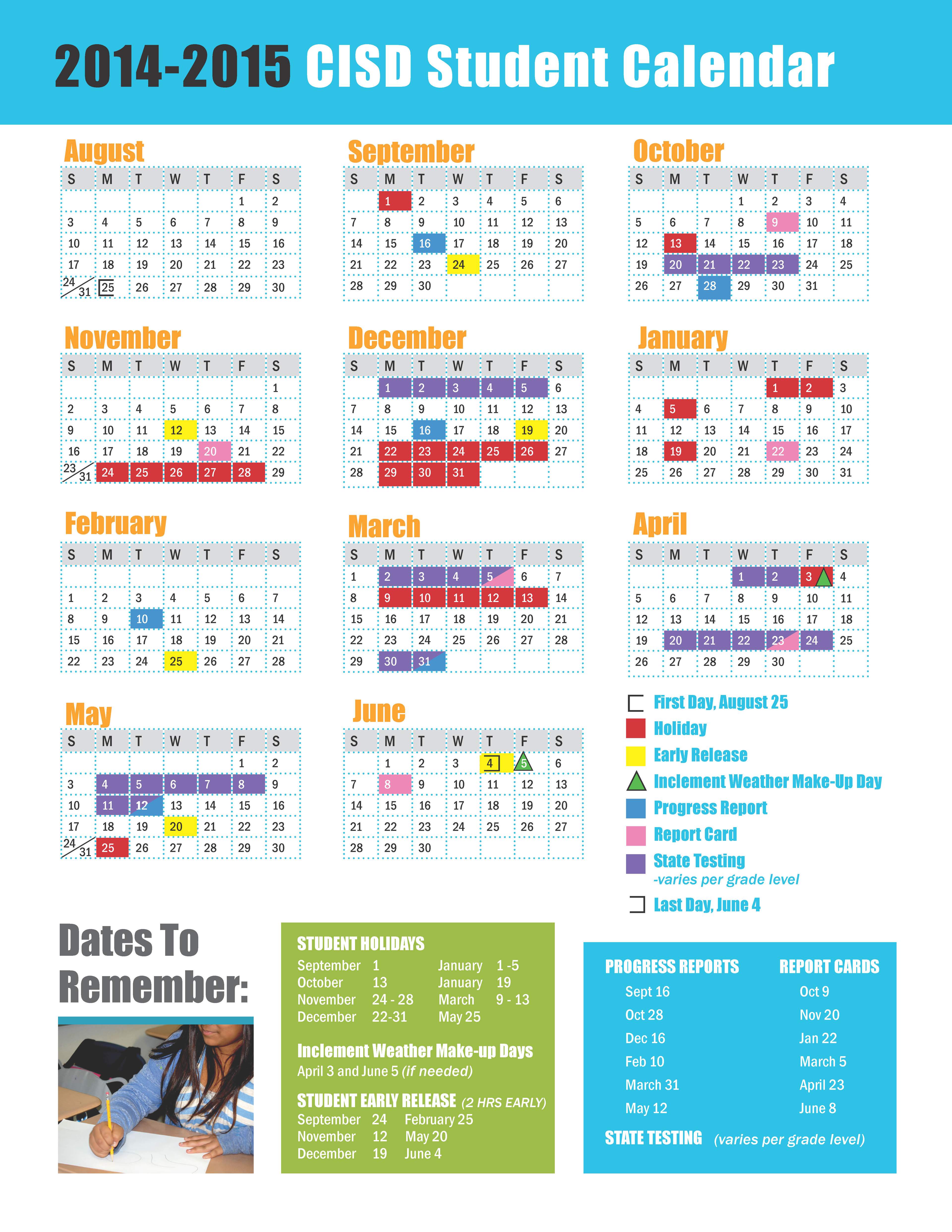 The 2014–2015 calendar relied on heavy color blocks, segmented content panels, and inconsistent typography. Information was spread across multiple boxed sections, creating competing visual priorities and limiting scanability.