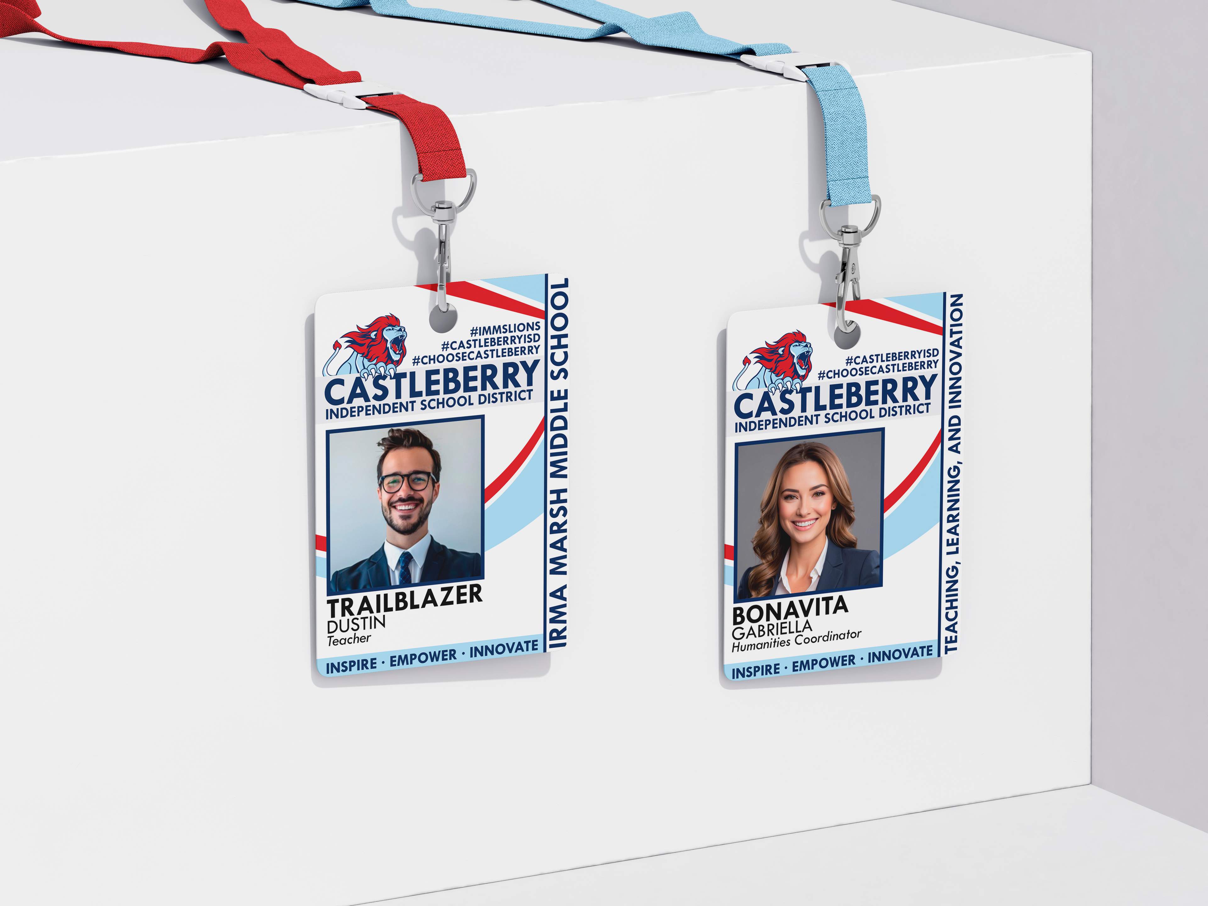 The previous badge design lacked hierarchy, visual consistency, and alignment with district branding. Logos, typography, and layout varied across campuses and roles.
