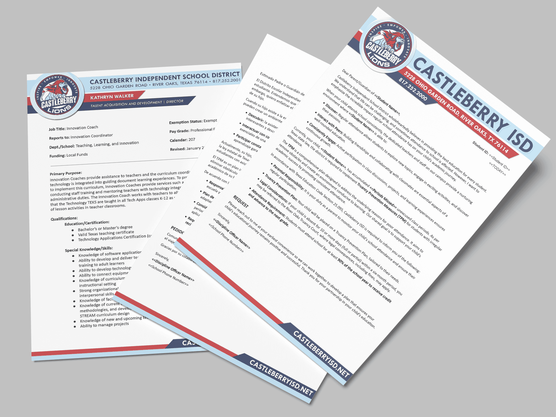 Official district correspondence lacked a standardized layout and visual hierarchy. Multiple logo variations were used, typography differed by department, and no scalable template system existed.
